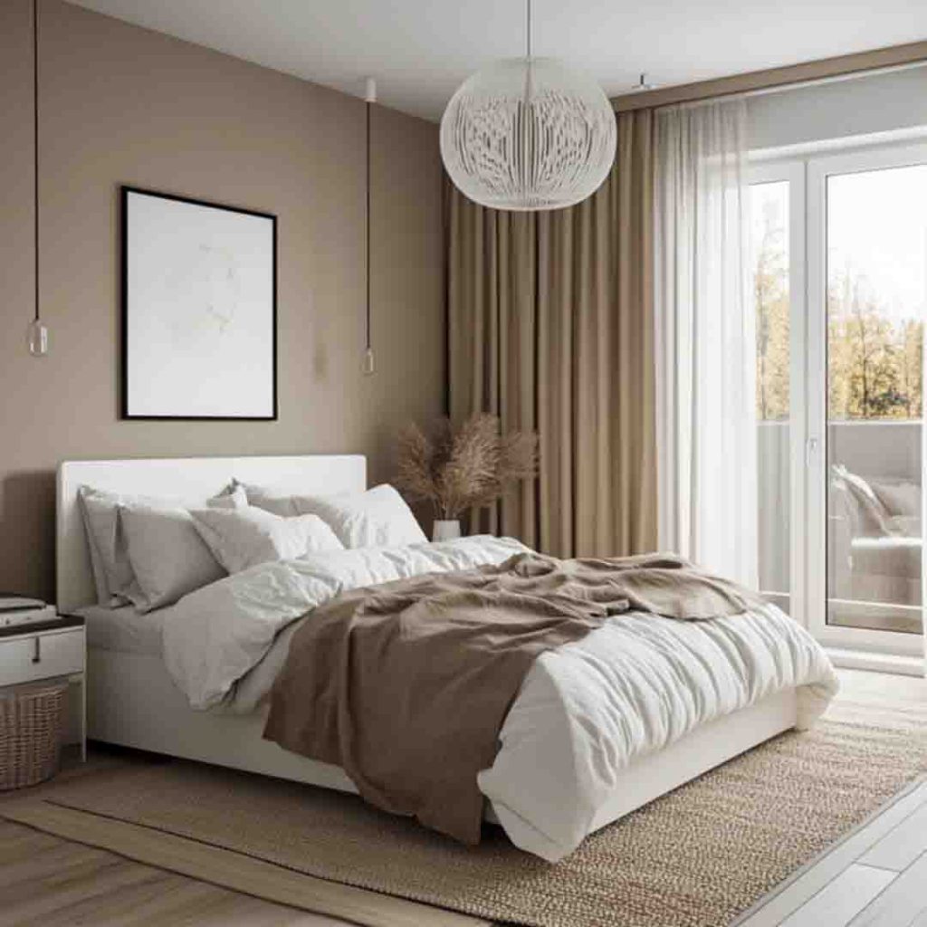 • Warm Taupe + Soft White: Warm taupe combined with soft white gives your bedroom space as both fresh and warmth to make it feel comfortable. This combination works well in both modern and traditional spaces offering versatility and charm.