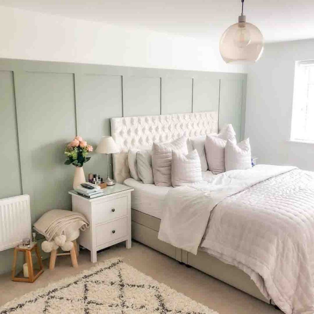 • Sage Green + Off-White: Sage green is a soft muted green that has a nature-focused theme. Combination with the off-white, it creates a clean tranquil environment for rest and relaxation. This combination brings a sense of balance and harmony to the room.