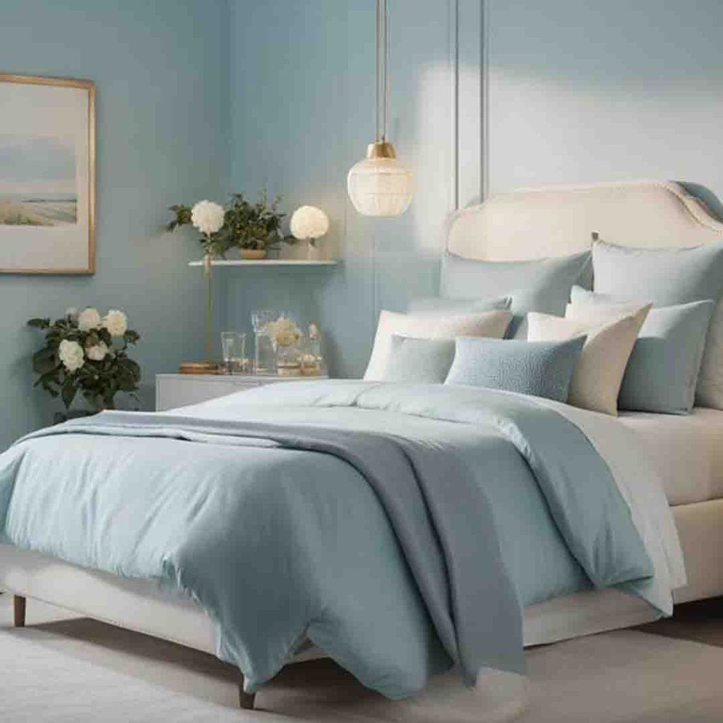 • Light Blue + Soft Grey: The combination of light blue and soft grey is ideal for creating a calm and peaceful bedroom. Light blue evokes the feeling of clear skies and wide open spaces and while soft grey brings in a touch of worldliness and depth.